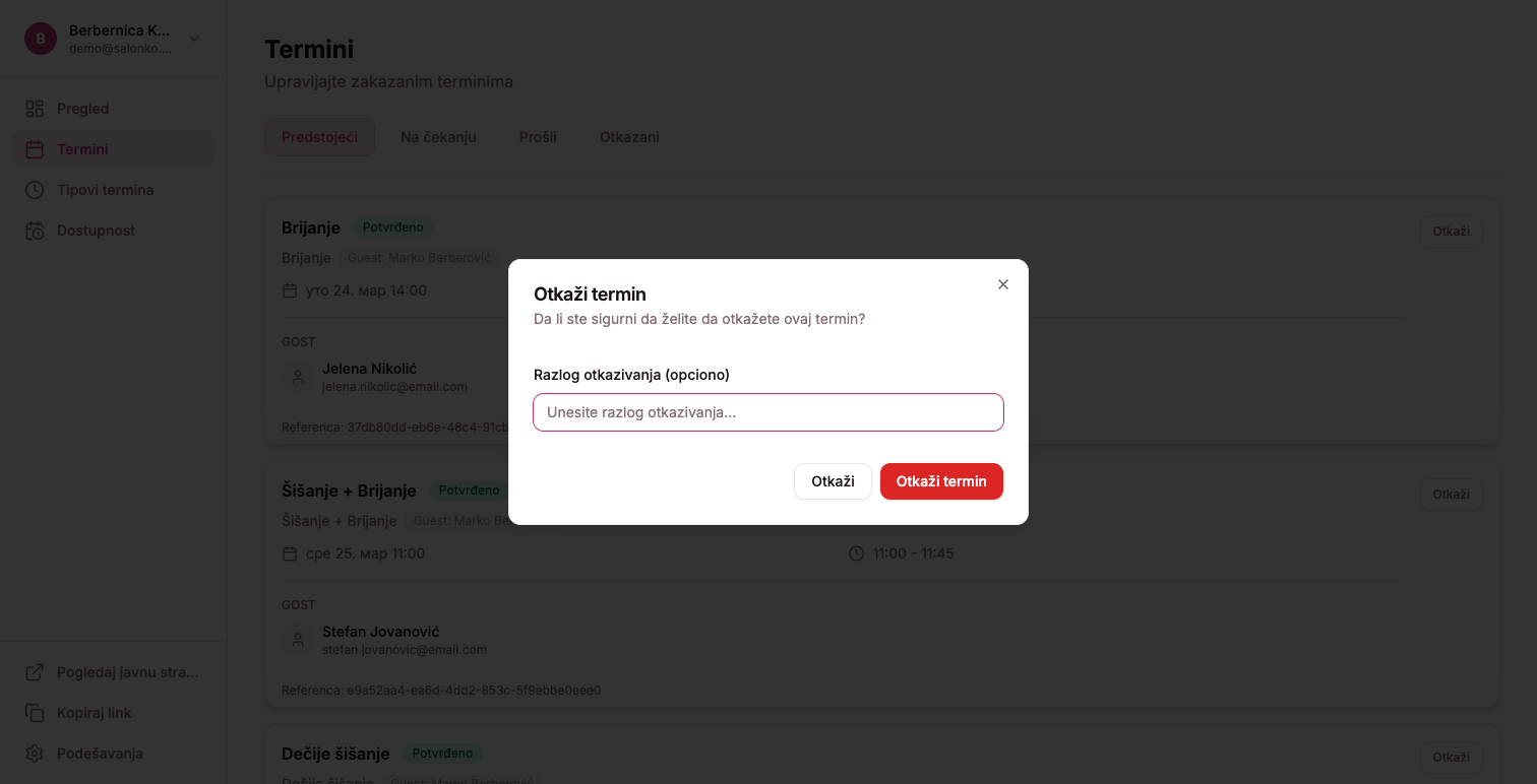 Ponekad je potrebno otkazati ili pomeriti zakazani termin. Evo kako to funkcioniše na Salonko platformi.
